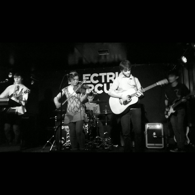 Next up are Little Kingdom, a folk/pop band from Edinburgh. They grab the attention of my ears immediately, as I grew up with folk music all around me and play folk music myself. The mix of electric guitar with fiddle, acoustic guitar with keys, drums and bass is music to my ears. The fact that they had free cake was pretty cool too. Kudos to the cake maker! It was very yummy! But, of course, this isn’t a review of how nice the cake was, but how great their music was. Their single “Yesteryear” (the artwork of which also featured on the cake) is simply amazing. Think traditional folk music crossed with modern pop music, with a wee bit of jazz thrown into the mix.